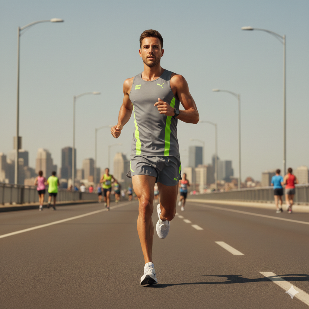 The AeroLite Marathon Jersey features breathable moisture-wicking fabric and lightweight construction to support endurance athletes.